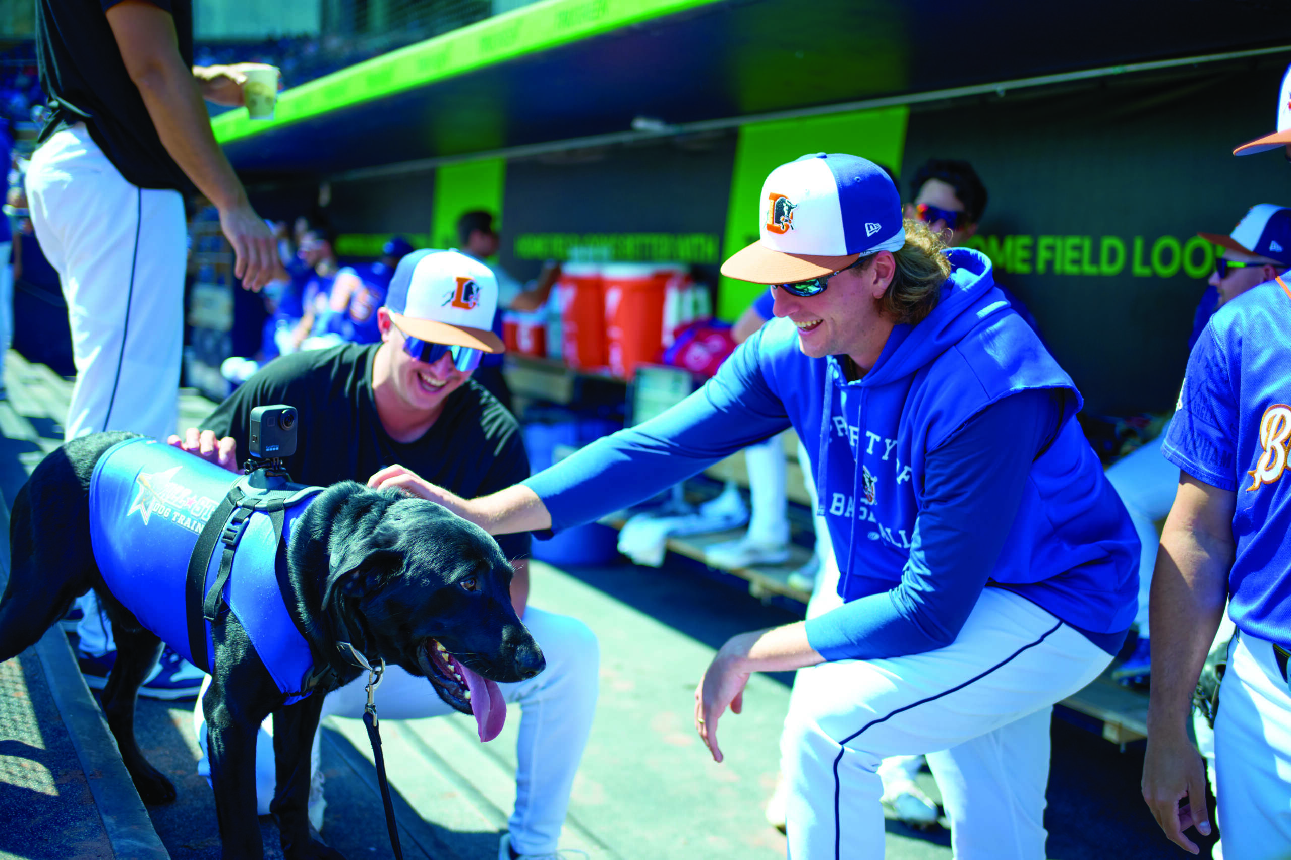 O’Donnell speaks from experience. His dog, Ripken, was the official bat dog of the Durham Bulls and the official kicking tee retriever for North Carolina State University’s football team. After Ripken’s passing in January, his brother Champ took over the role. At two, Champ is thriving in the spotlight in front of thousands of fans in the stadiums. It’s incumbent upon O’Donnell to make sure Champ is engaged when he’s working, and that means really focusing on his mental activity.