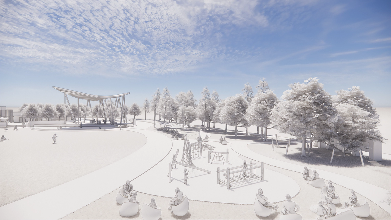 Along Carolina Street, visitors will encounter a series of small recreation spaces, including a natural-feature playground and areas for sitting and relaxing. Cottage retailers will line the extension of Foxglove Drive—coffee vendors, ice cream vendors and similar shops.