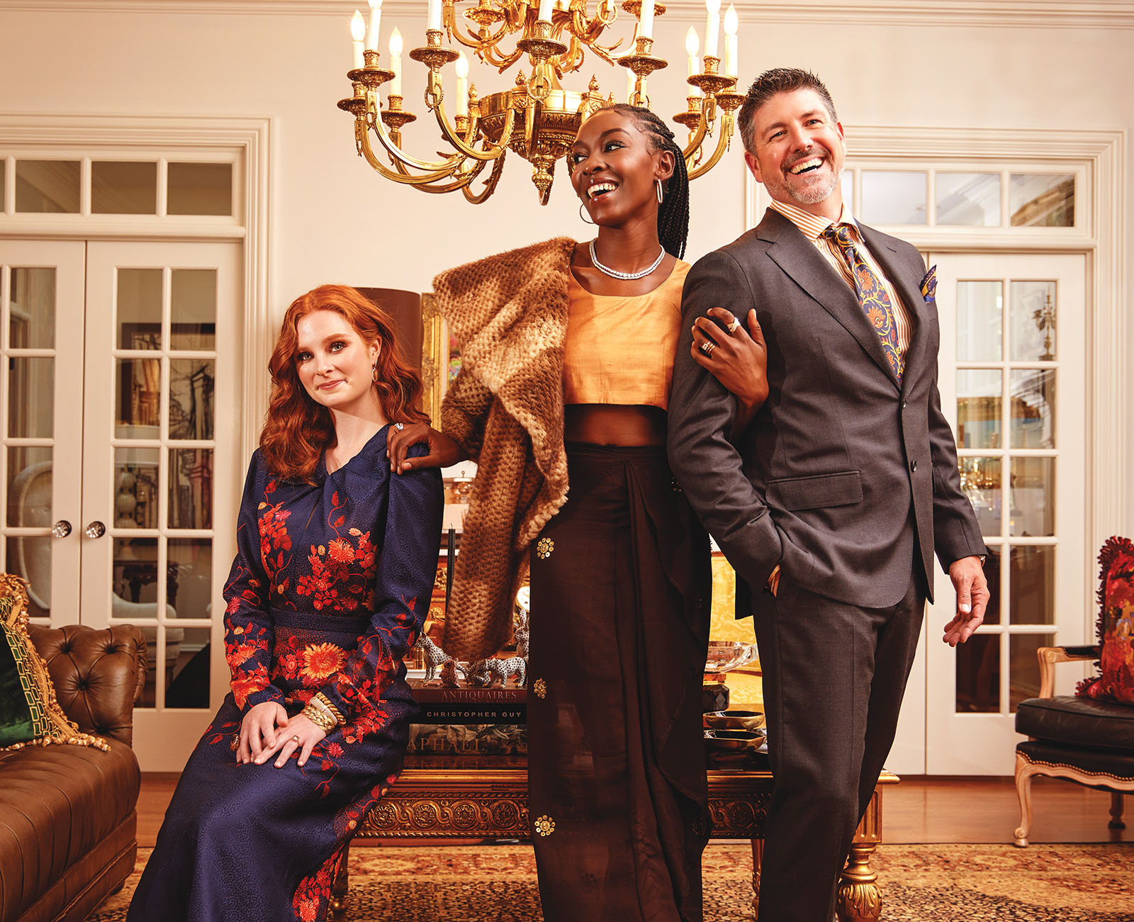 Our annual fall fashion feature showcases nine outfits by designer Sofia Lujan in the magnificent home of Raleigh interior designer Tula Summerford, owner of Design by Tula. (To learn more about Tula, read “Elegance in Every Detail” on page 40.) Enjoy these elegant ensembles worthy of this season’s fashion trendsetters. These outfits will carry you through the fall and holiday seasons—from evenings spent at “The Nutcracker” ballet or a concert with the Trans‑Siberian Orchestra to cocktail parties sparkling with champagne.