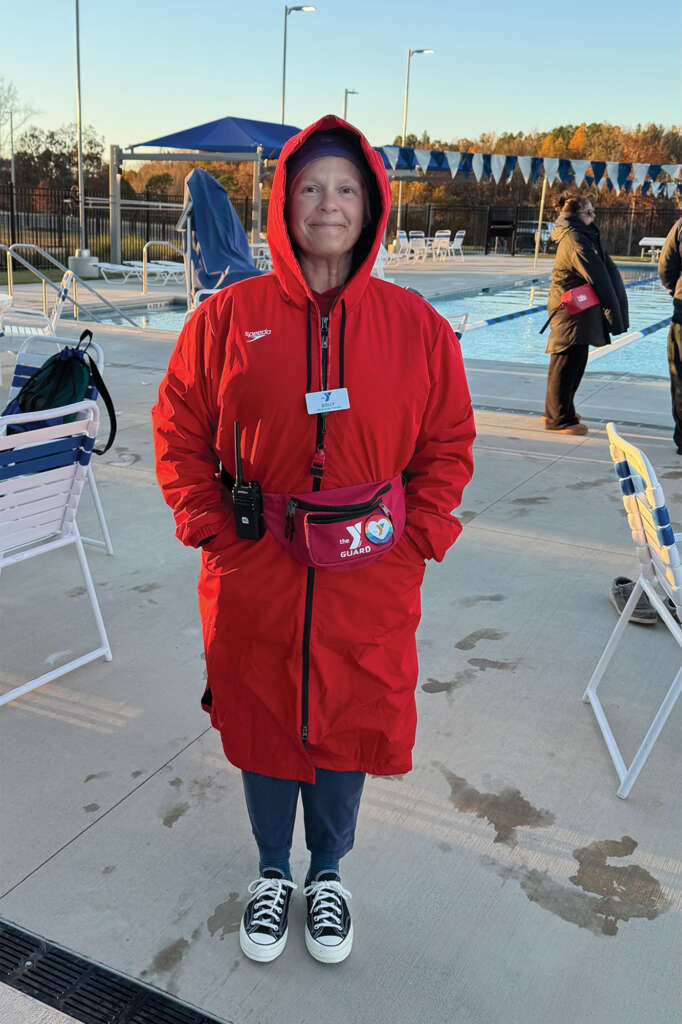 At the Chatham Park YMCA in Pittsboro, where I put in most of my hours, 33 guards will return for the summer and half a dozen of us are over 40. We’re a hearty bunch at Chatham County’s only Y facility, because we operate our outdoor-only pool with no bubble or retractable DynaDome. We keep the water a balmy 82 degrees and open during the day as long as it’s over 35 degrees. There’s camaraderie in the cold, between the guards and with the swimmers.