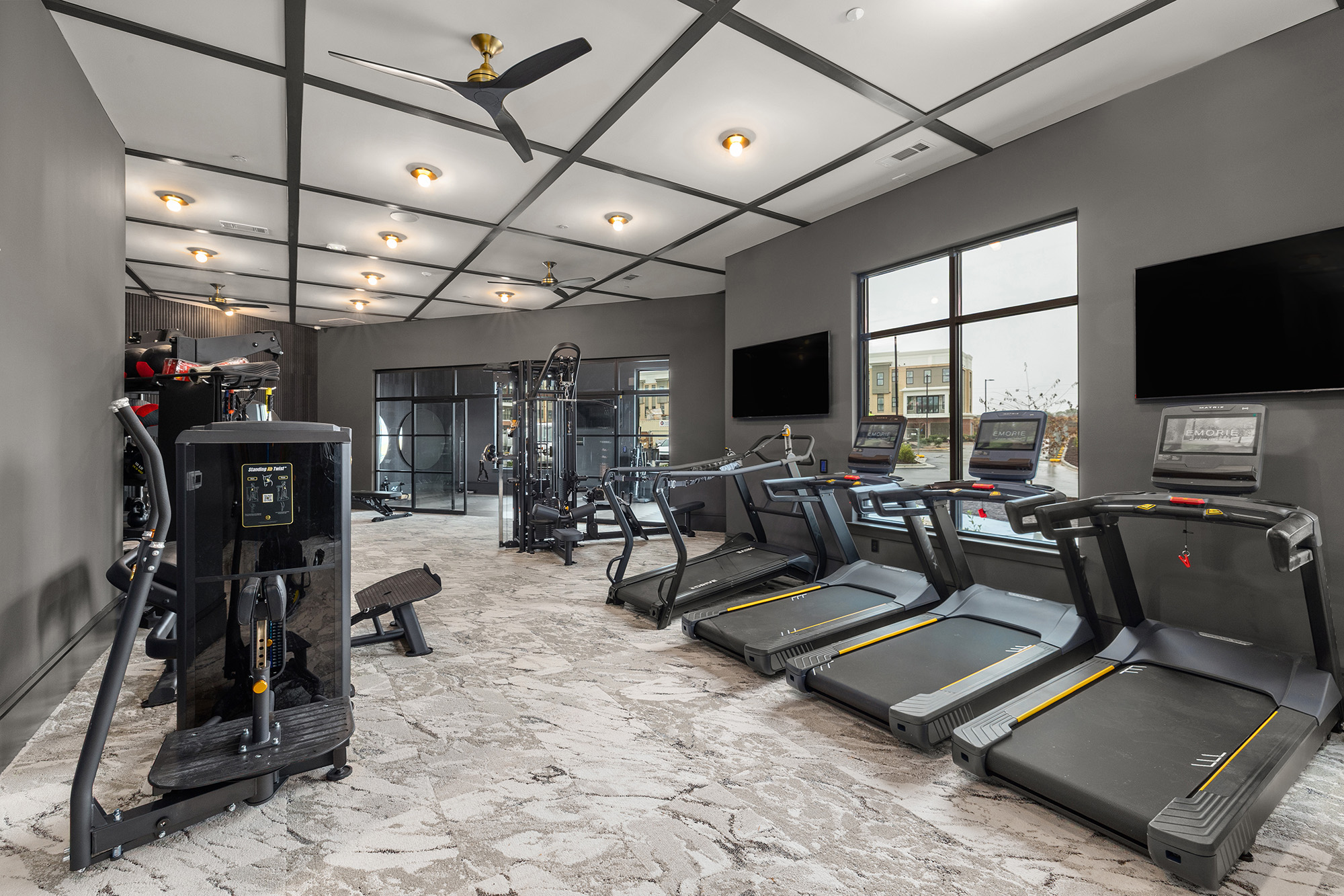 Emorie offers a mix of studio and one- and two-bedroom residences ranging from 682 to 2,647 square feet. Homes feature open floor plans, stainless steel appliances, quartz countertops, generous storage, and private patios or balconies. Additional residences, including townhomes, carriage units with private garages, and three penthouses, are scheduled for completion by summer 2026.