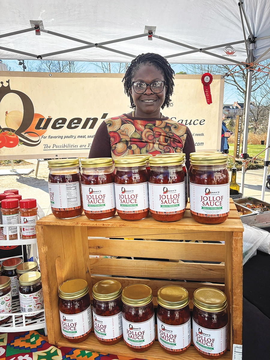 Her neighbors came for those first five jars, but soon they were lining up at her home every time she made another batch. The positive reviews from her neighbors sent her off to the Apex Farmers Market, where she whipped up the first 100 jars of Queen’s Jollof Sauce. “I had my display and the products, and I had the jollof rice cooking. I would mix it and serve it as a sample. We sold out.”